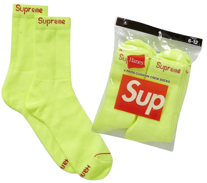 Supreme Hanes Crew Socks (4 Pack) Flourescent Yellow