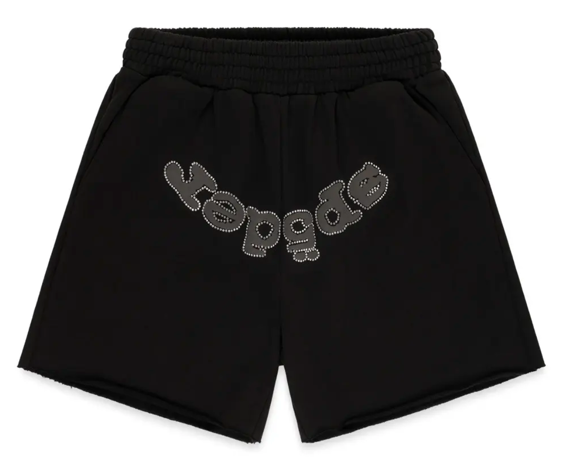 Sp5der OG Rhinestone Phantom Black Cotton Shorts